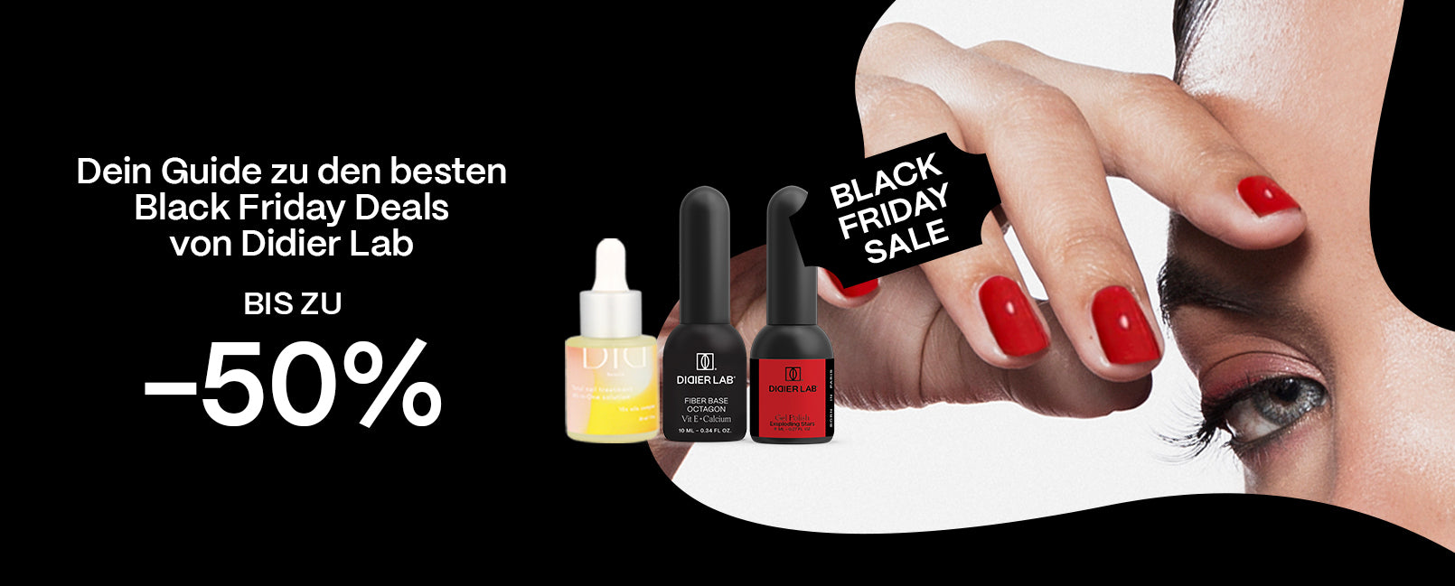 Der ganze November steht bei Didier Lab im Zeichen des Black Friday Sale – mit Rabatten bis zu -50% auf fast das gesamte Sortiment! Von Gelen über Basen, Top Coats bis hin zu Nagellacken – jetzt ist der beste Zeitpunkt, deine Lieblingsprodukte aufzufüllen oder Neues auszuprobieren.