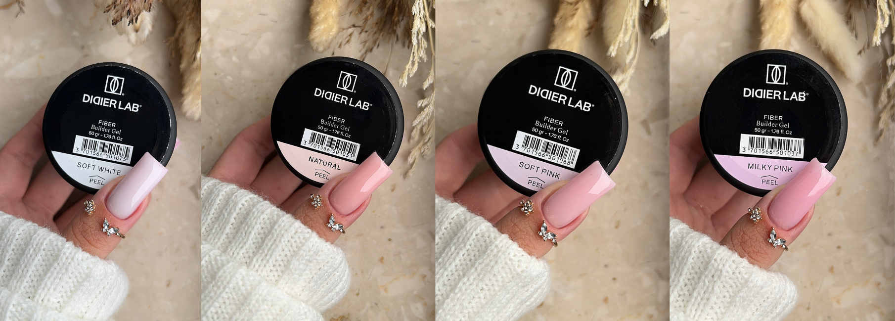 Polygele lassen sich leicht modellieren, während das Fiber Builder Gel mit Glasfasern verstärkt ist und selbst die dünnsten Nägel stabilisiert.