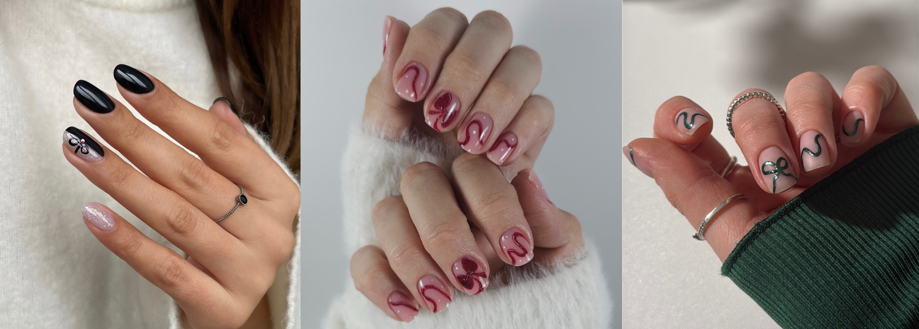 Schleifen-Nägel gehören 2025 zu den größten Festtagstrends.