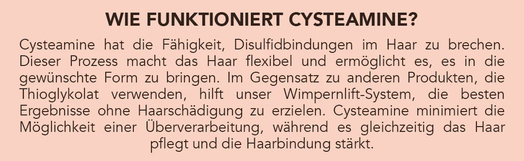 Cysteamine ist ein natürlicher Inhaltsstoff, der sich als wahrer Segen für deine Wimpern erweist. Diese kraftvolle Substanz hilft nicht nur, deine Wimpern zu stärken und zu nähren, sondern fördert auch ihr gesundes Wachstum. Das Ergebnis? Wunderschön geliftete und dichtere Wimpern, die natürlich schön aussehen. Kurz gesagt: Cysteamine ist der Schlüssel zu einem bezaubernden Wimpernaufschwung!
