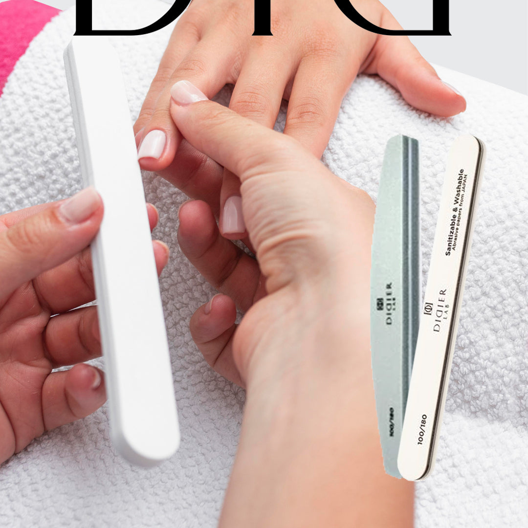 Verwende den Didier Lab Polierblock oder eine gerade Didier Lab Nagelfeile 100/180, um die oberste Schicht des Top Coats behutsam zu mattieren.