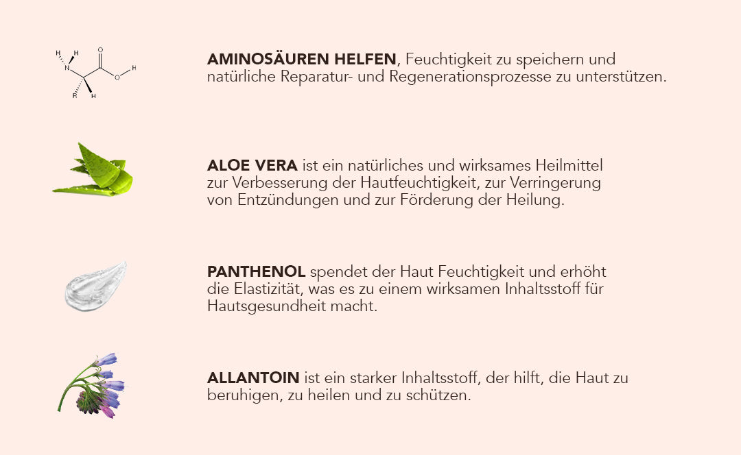 - Allantoin beruhigt die Haut und schützt vor Reizungen