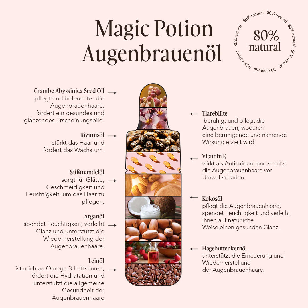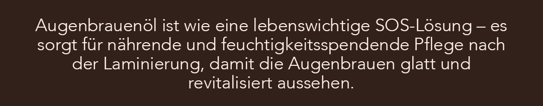 - Ein leichtes Öl zur täglichen Pflege der Augenbrauen, besonders empfohlen nach Behandlungen wie Laminierung oder Färbung.