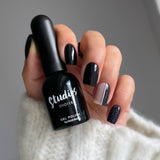 FORBIDDEN - Ist ein tiefschwarzer Gellack, der den dunkelsten Tiefen der Nacht oder der Schwärze eines mondlosen Himmels ähnelt. Dieser Farbton ist äußerst vielseitig und daher eine beliebte Option in vielen Nageldesigns.