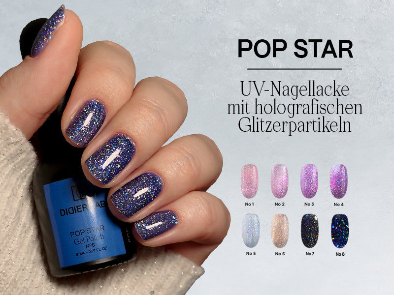 Die Gellacke der POP STAR Kollektion sind mehr als nur Nagellack - sie sind ein funkelndes Statement! Diese Gellacke sind mit holografischen Glitzerpartikeln angereichert, die Ihre Nägel in wahre Kunstwerke verwandeln.
