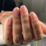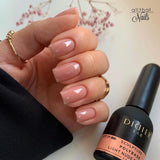 4. Trage 1 Schicht von Kautschuk-Lack Polybase auf den Nagel auf und bewege den Pinsel vorsichtig über die Oberfläche - genau wie beim Auftragen von Hybridlack. Wenn die 2. Schicht erforderlich ist, bitte möglichst dünne Schichten auftragen, sonst könnte die Polybase nicht gut genug ausgetrocknet sein.