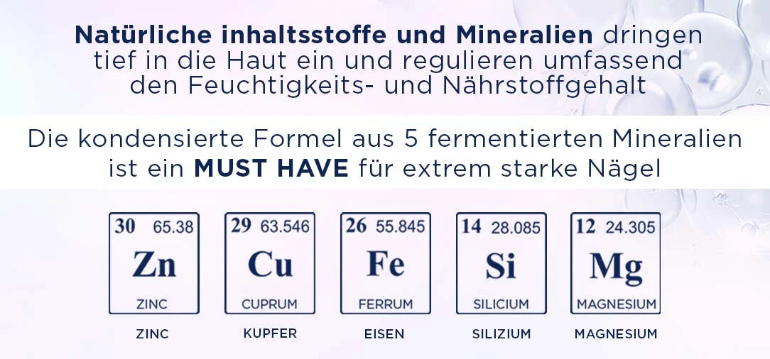 • Komplex aus fünf fermentierten Mineralien: Zink, Eisen, Silizium, Kupfer und Magnesium für eine superstarke Nagel
