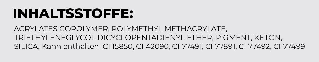 Acrylates Copolymer, Polymethyl Methacrylate, Triethoxycaprylylsilane, Hydroxycyclohexyl Phenyl Ketone, Silica, Kann Enthalten: CI 15850, CI 42090, CI 77492, CI 77266, CI 77891, CI 77742