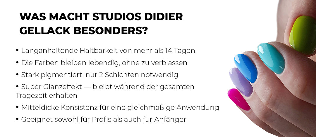 STUDIOS COLLECTION: Gellacke der neuen Generation mit einer unikalen Formel, deren Hauptaufgabe ist, die beste Haltbarkeit der Maniküre zu erreichen!