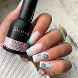 4. Trage 1 Schicht von Kautschuk-Lack Polybase auf den Nagel auf und bewege den Pinsel vorsichtig über die Oberfläche - genau wie beim Auftragen von Hybridlack. Wenn die 2. Schicht erforderlich ist, bitte möglichst dünne Schichten auftragen, sonst könnte die Polybase nicht gut genug ausgetrocknet sein.