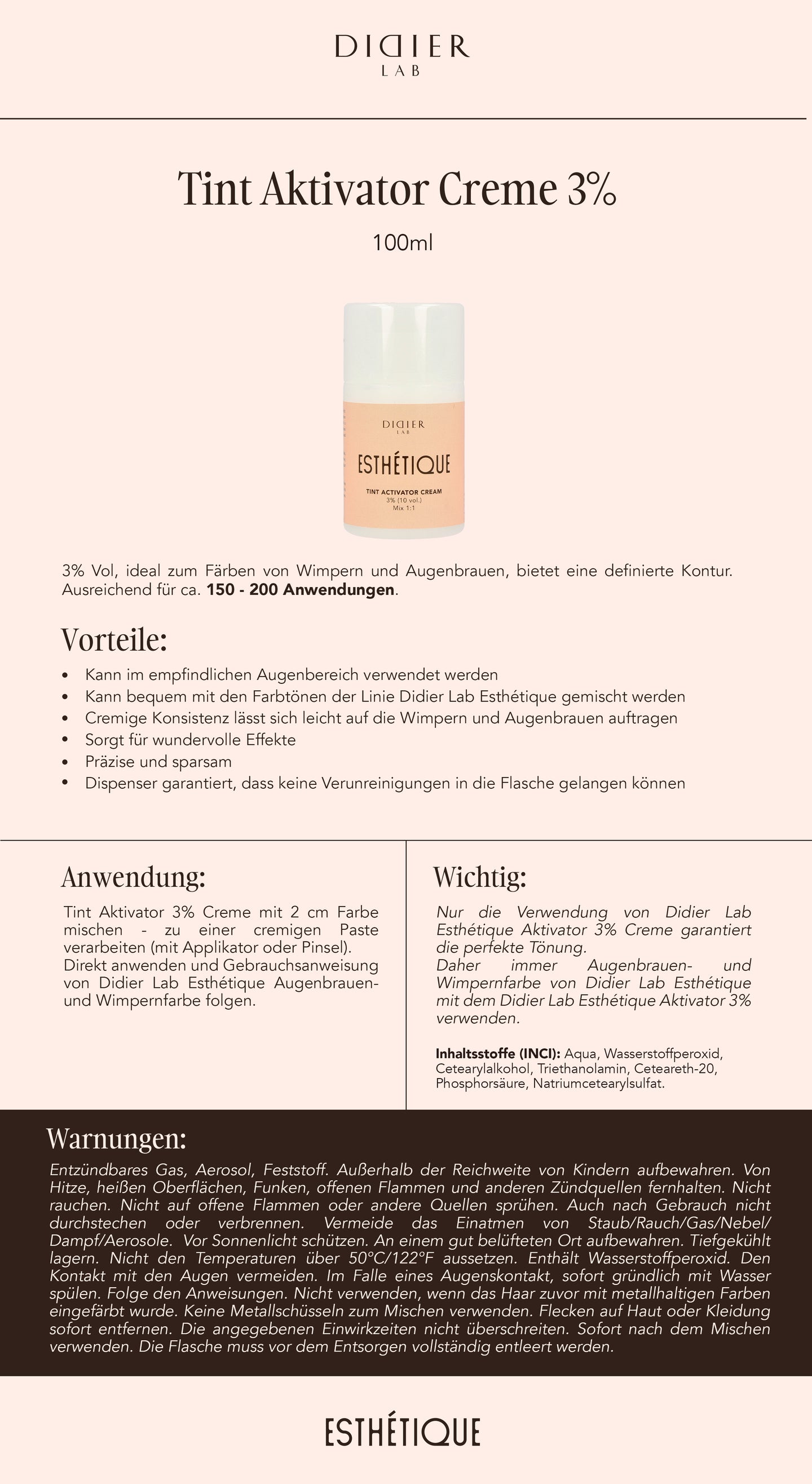 Tint Aktivator Creme 3%, Esthétique, DidierLab, 100ml